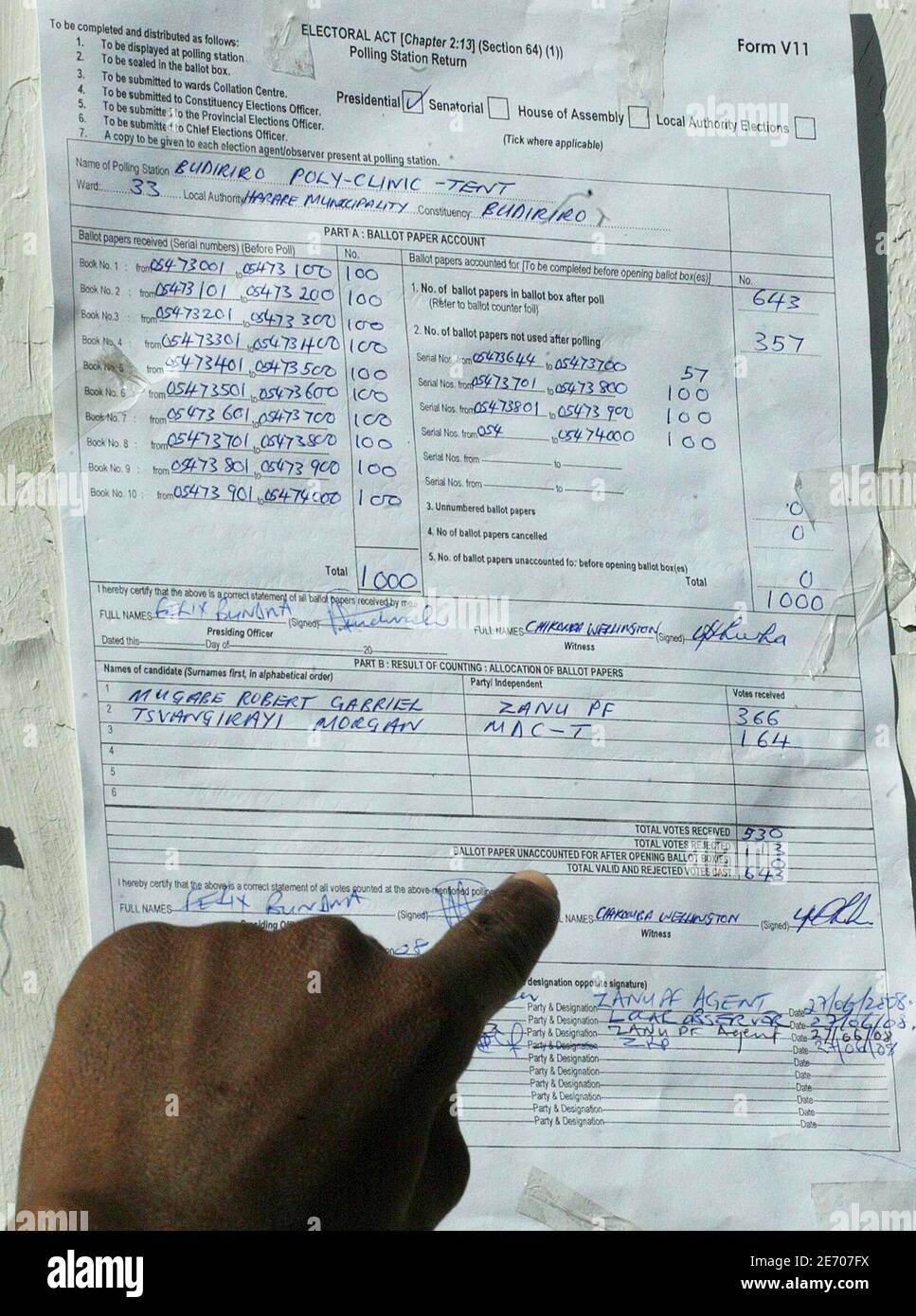 Name of Candidate Sex Party Votes Received. HARARE 1 April 2008 IRIN - Three days after Zimbabwes March 29 poll rumour speculation and uncertainty are the only tangible results of. Echoing concerns about vote-rigging was the Zimbabwe Election Support Network which has released unofficial results showing Mr.