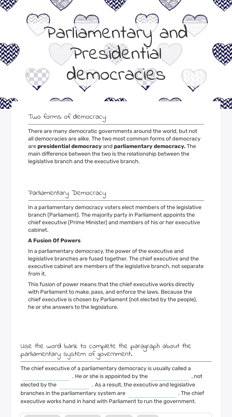 Parliamentary And Presidential Democracies Interactive Worksheet By Briannon Jarrell Wizer Me